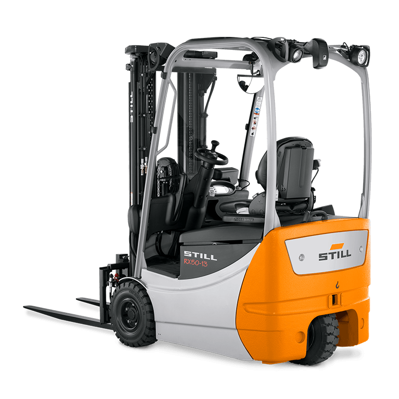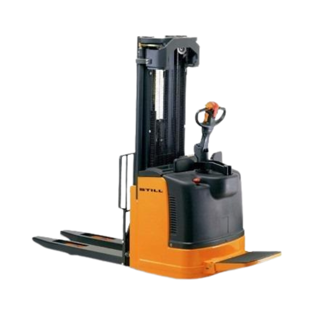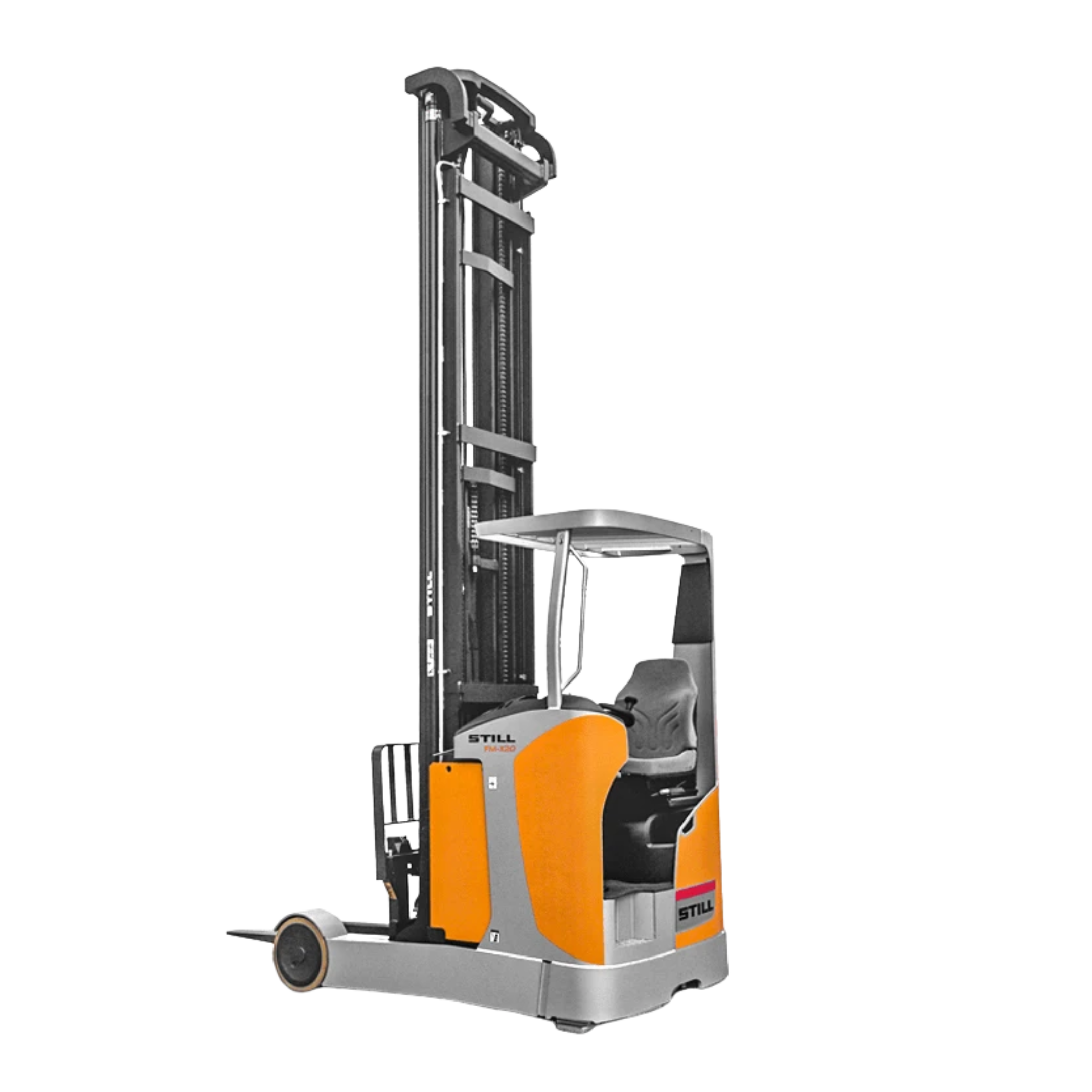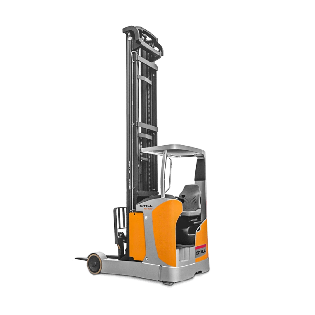 Empilhadeira compacta e ideal para operar em corredores de manobra estreitas dentro de armazéns e centros logísticos.